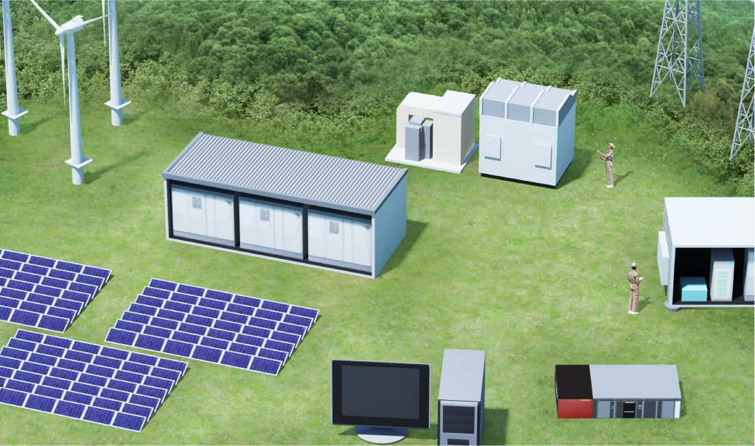 太陽光発電能力を最大化するPV-PCSと制御システム、蓄電池制御などによる電力の安定化、風力発電事業の計画を支援するシミュレーション技術、地熱・バイオマスの有効活用など様々なソリューションで再生可能エネルギー事業を支えています。