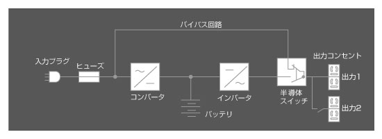 切換時間 停電復電時:無瞬断、バイパス切換時:無瞬断(半導体スイッチ) (注5)