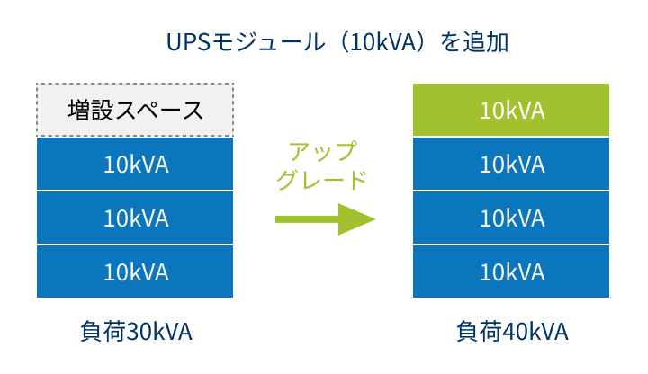 UPSモジュール(10kVA)を追加する事により、