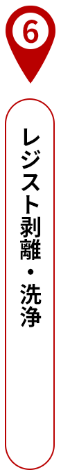 残っているフォトレジストを薬液やガスを使って剥離し、その後ウエハー上に残っている不純物を薬液で除去し、純水で洗浄します。