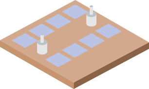 不純物イオンを注入し、高温で加熱・活性化させ(アニール)、さらに高温で深い層まで不純物層を広げる処理(拡散)を行います。これによって、半導体として機能するために必要な電気的特性を持たせることができます。